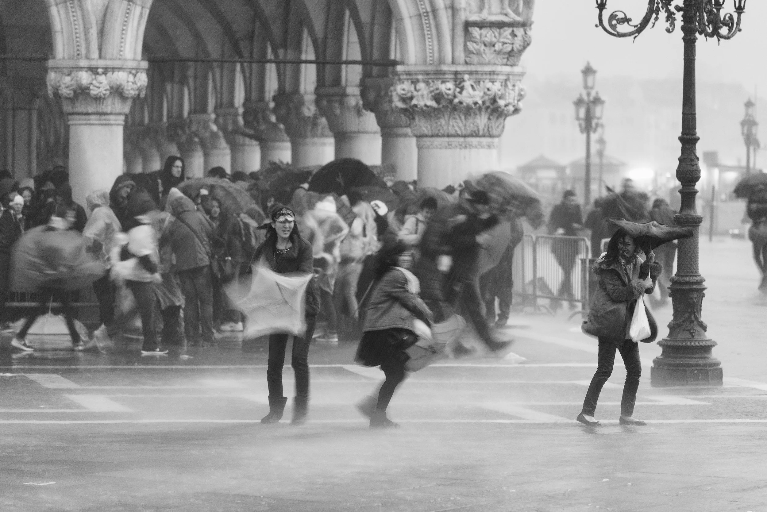 Kavargott a fejem, tolultak a gondolatok, de csak haladtam tovább. Már nem létezett a karnevál, nem létezett Velence. A kikötőben szintén kellemetlen látvány fogadott. Bár nem is számítottam jobbra. Ameddig a szem ellátott, egy több ezer esernyős tömeg várakozott, sikolyok és kiabálások közepette tolongtak az emberek, a tengeren pedig a szél korbácsolta hullámok között a hajók igyekeztek kikötni. Teljes volt a káosz. Nem volt más választásom, megcélozva a tömeget akaratlanul is lökdösődve haladtam a Gabriella Hotel felé, a megbeszélt találkozó helyre. Rémálom volt a következő pár óra. Az ismerősöket sikerült hamar megtalálnom, a látótávolság csak pár méter lehetett, mert esernyők erdeje vett körül minket. Igyekeztünk továbbra is együtt maradni.