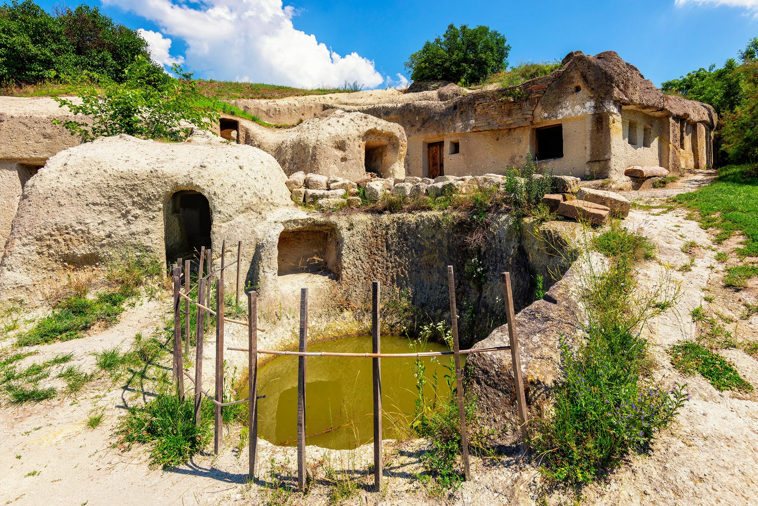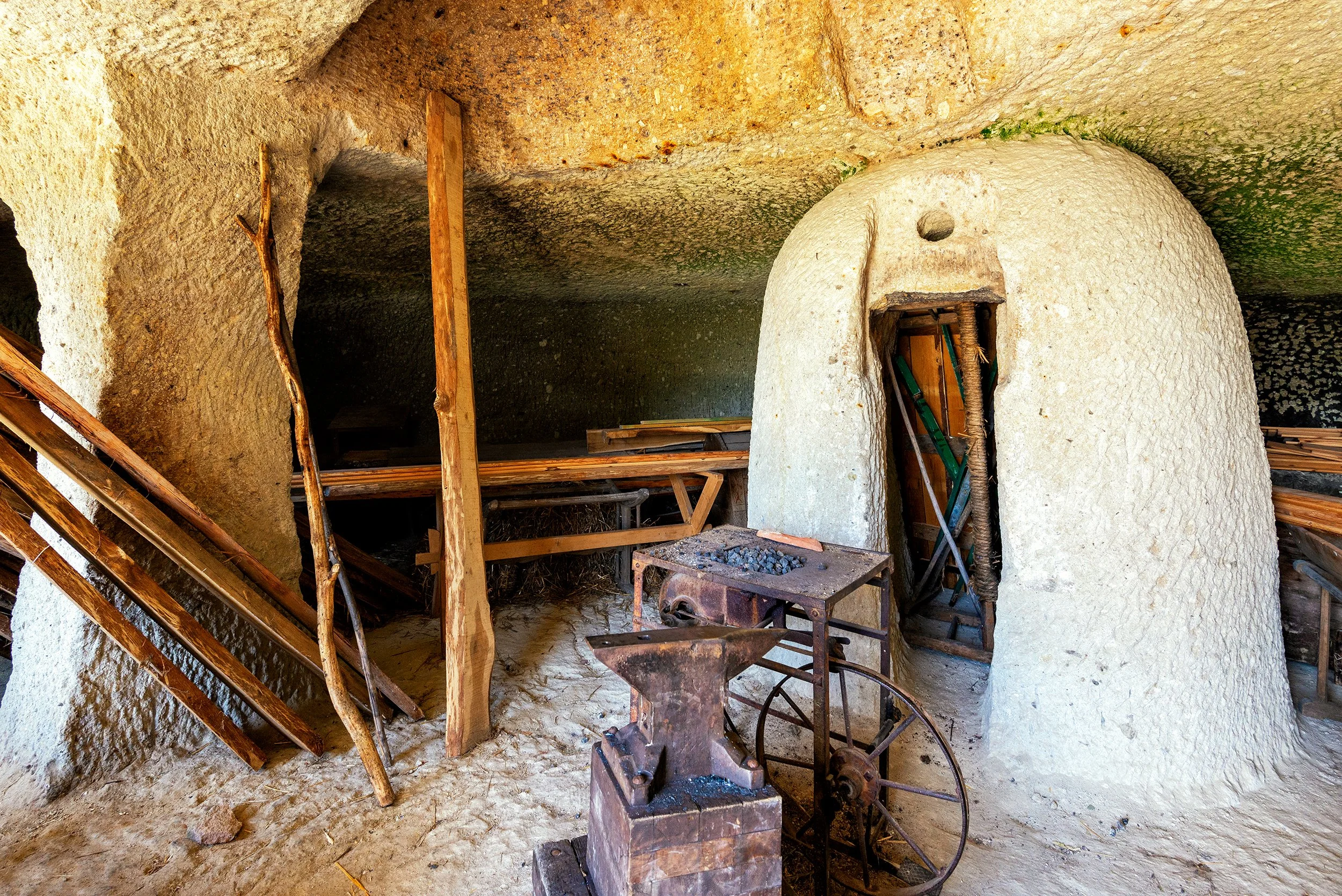 A padló általában döngölt föld vagy a kivájt kőréteg maradt. Falba vájt kemence is készült a bejárati ajtó közelében, hogy a nagyobb füst ne csak a mennyezetbe fúrt kürtőn, hanem az ajtón és ablakon is szabadon távozhasson. Az esős évszakokban a talajvíz sokszor megemelkedett, így a lakás közepére ásott nagyobb gödörbe gyűjtötték a vizet, hogy a lakás többi része száraz maradjon. A penészesedés ellen a falak meszelésével védekeztek, azonban ez sokszor nehézkes volt.