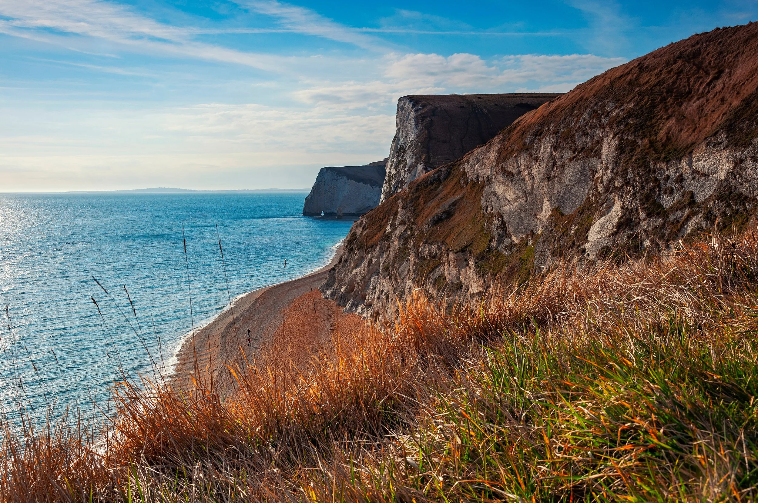 A Lulworth Cove (West Lulworth) közeli parkolóból indultam hosszabb gyalogutamra és léptem rá Dél-Anglia világörökségi helyszínére, a Jurassic Coast-ra. Exmouth-tól (Devon) Studland-ig (Dorset) húzódik, mintegy 154 kilométer hosszan, 2001 decemberében került fel a világörökségi listára. Az Exmouth közelében fekvő partszakaszok, a weymouth-i Fleet Lagoon és a studland-i strandok szintén katonai kiképzésre szolgáltak, de azóta visszakerültek polgári használatba. Hatalmas területen nyúlik el ez 185 millió év geológiai történelmét felölelő partszakasz, feltételezem, hogy még mindig vannak érintetlen részei. A triász, a jura és a kréta időszakokban ez a terület sivatag, sekély trópusi tenger és mocsár volt, és az akkor ott élt lények fosszilis maradványai megmaradtak a kőzetekben, pontosabban a területen élő állatok és növények a sárba merültek, majd később a testi szöveteik kőzetté keményedtek.