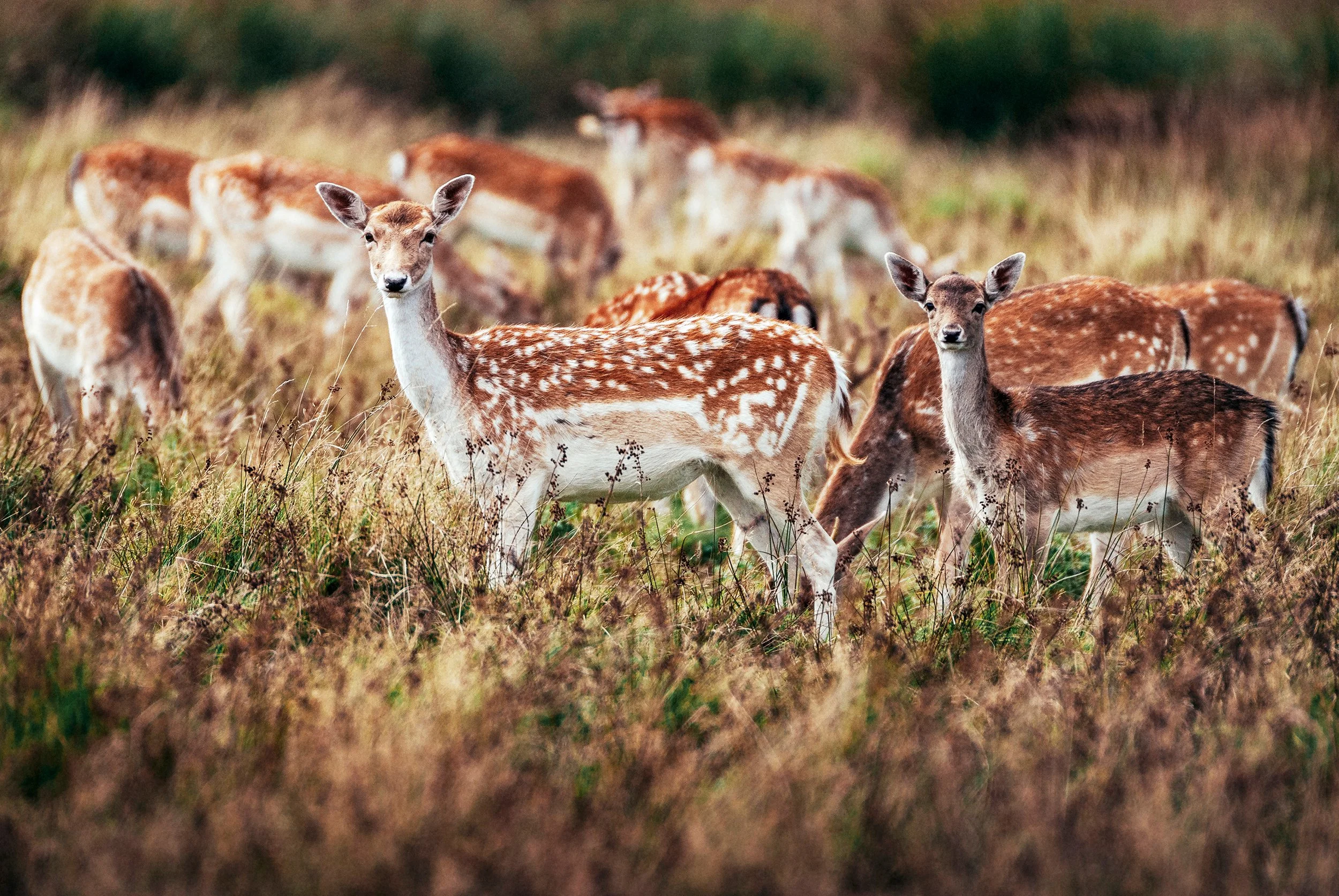 Nagyon lassan lopakodva tudok követni egy-egy nagyobb csapatot. Meg lehet figyelni a családokat, ahogy együtt haladnak, a barcogáson kívül a bikák csak távolról csatlakoznak a csoporthoz. Ha legelnek, akkor még óvatosabban kell megközelítenem őket, mert ilyenkor még könnyebben meg tudom zavarni a csapatot. Ha már egy állat is felfigyel jelenlétemre, már tovább is állnak egy újabb területre, ahol füvet, faágakat, leveleket, cserjék hajtásait csemegéznek. Átlényegülve, tiszta gondolatokkal olvadok bele a magas fűbe és közben egyre közelebb és közelebb húzom magam a fűből kilátszó agancsokhoz. Gondolataim mantrába olvadnak és kezdek láthatatlanná válni: