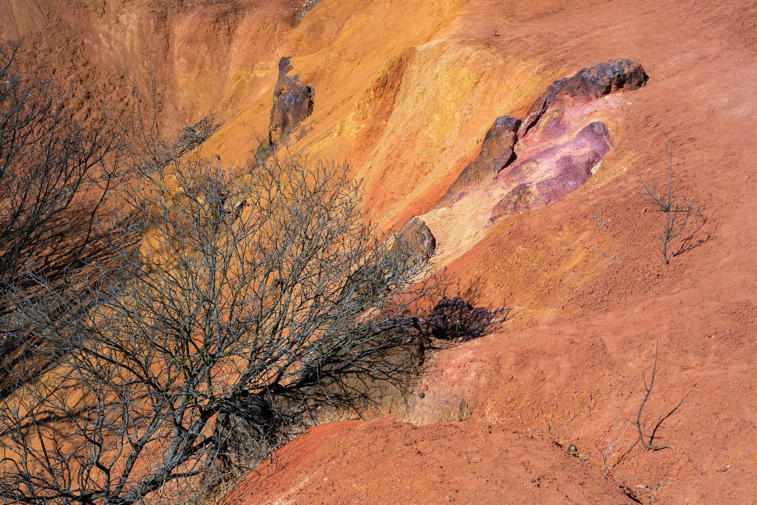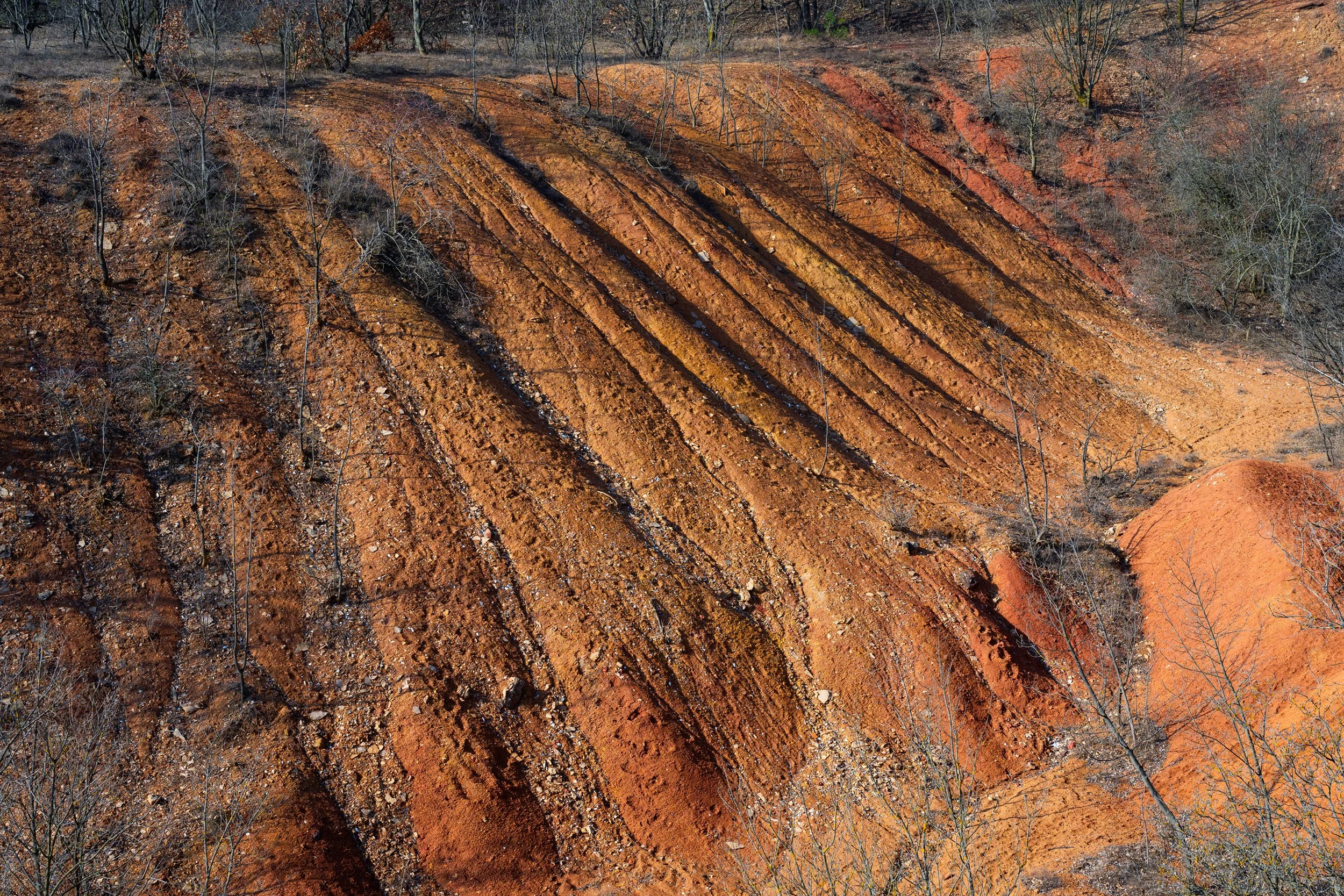 A hatalmas mennyiségű vörös elvakította a szememet. Mint egy megsebzett vad, tátongó völgyei és páncélosra keményedett sziklafalai nem mozdultak többé, csak némán, vörösbe burkolózva vett körül e szokatlan táj. Pontosabban a szemem számára volt szokatlan, ugyanis egy átlagos nap folyamán az emberi szem rendszerint csak zöld, kék, barna, szürke és fehér színekkel találkozik. A friss levegő hamar füstösre festette az arcomat, az árkokban rekedt leveleket talán már a sokadik ősz hagyhatta maga után. Már az első métereknél a látvány olyan izgalomba hozott, hogy a reggeli óráktól egészen naplementéig jártam az egész területet és alaposan szemügyre vettem ezt az élénk sárgában, bordóban és lilában pompázó világot. Ez itt valójában a Föld, a Vértes lábánál található Bagoly-hegy gánti bauxitbányája, de mégis, mintha a Marson lennék.